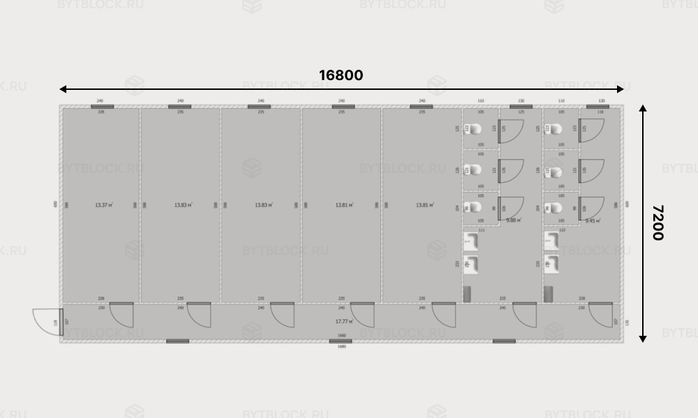 Административно-бытовой комплекс МЗ-01 из 7 блок-контейнеров с санузлами