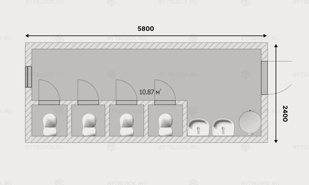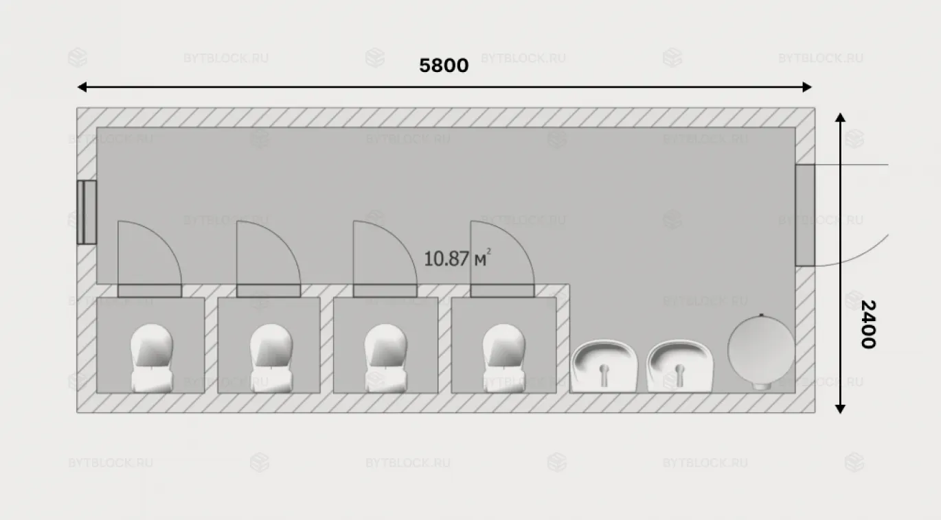 | Дополнительно | Туалет - 4 шт., раковина - 2 шт., бойлер |