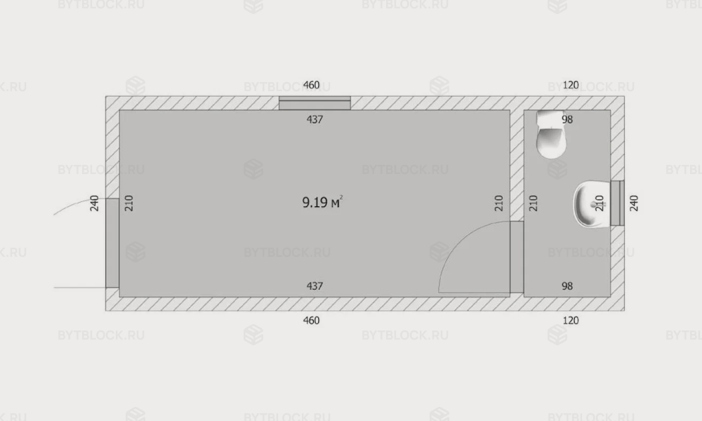 | Санзона | Раковина, унитаз, перегородка сан зоны с дверью МДФ,ПВХ отделка сан узла, окно ПВХ 500*500 мм |