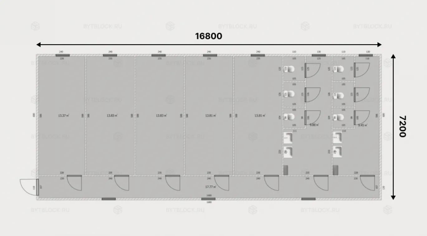| Дополнительно | Туалет – 6 шт. Раковины – 4 шт. Бойлер 100 л – 2 шт. |
