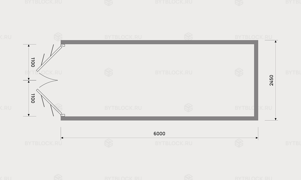 При ограниченной площади участка и сроках строительства целесообразнее использовать готовое помещение – морской блок-контейнер 20 футов от компании «БытБлок». Изделие с соотношением сторон 6 х 2,45 м свободно размещается на небольшом участке, а общей площади 14,7 кв. м достаточно для размещения людей и имущества.