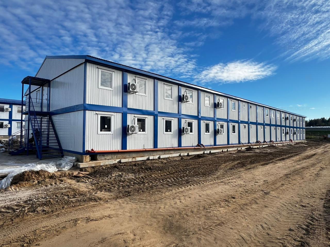Модульное здание состоит из 100 вагонов на базе БК-00, в него входит все необходимое для проживания порядка 250 человек: жилые комнаты, душевые, бойлерные. Здания полностью готовы к заселению – внутри уже установлены раковины, унитазы, душевый кабинки. Для подачи горячей воды мы установили несколько бойлеров объемом 300, 100 и 50 литров.